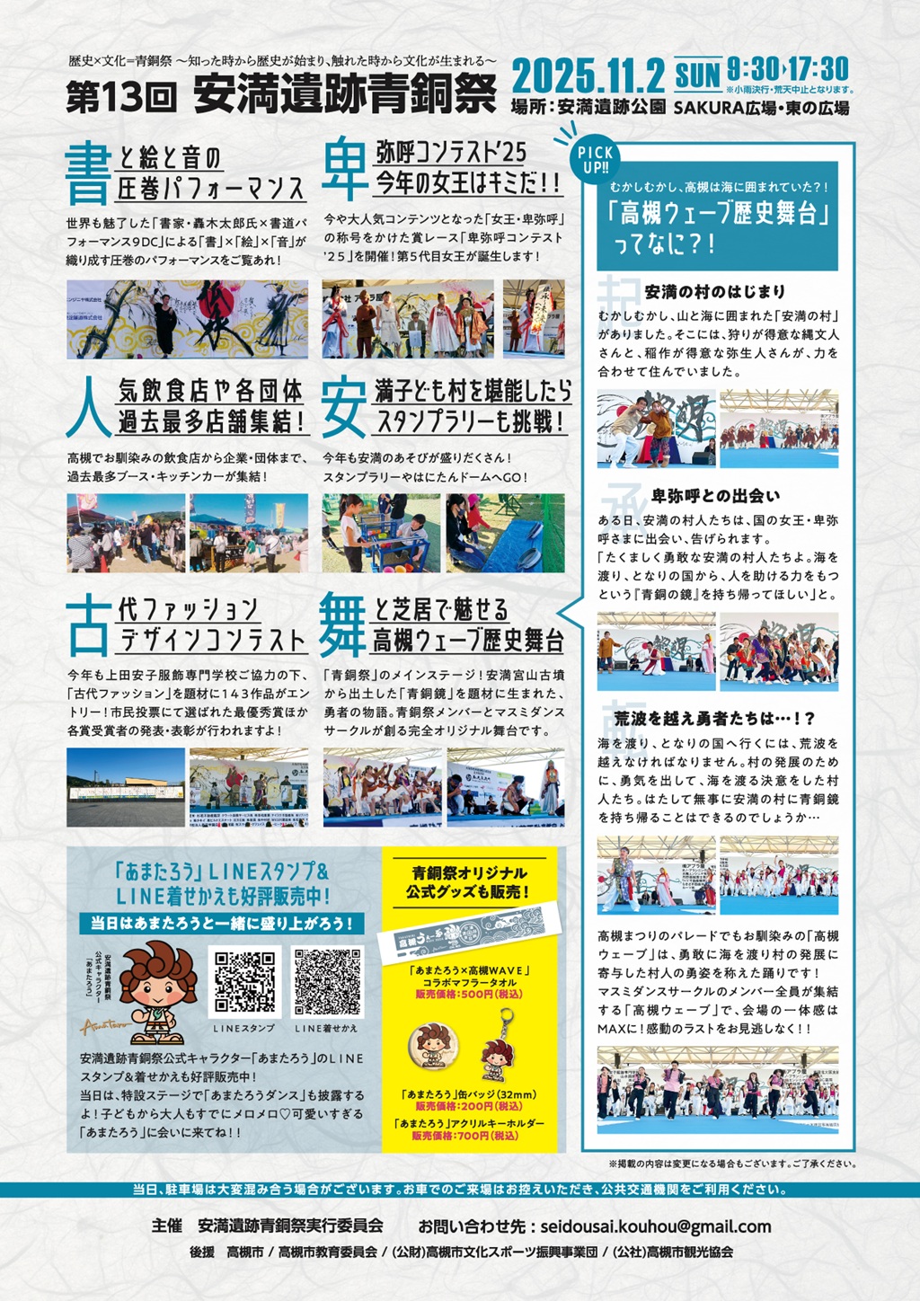 お問い合わせ:安満遺跡青銅祭実行委員会(seidousai.kouhou@gmail.com)