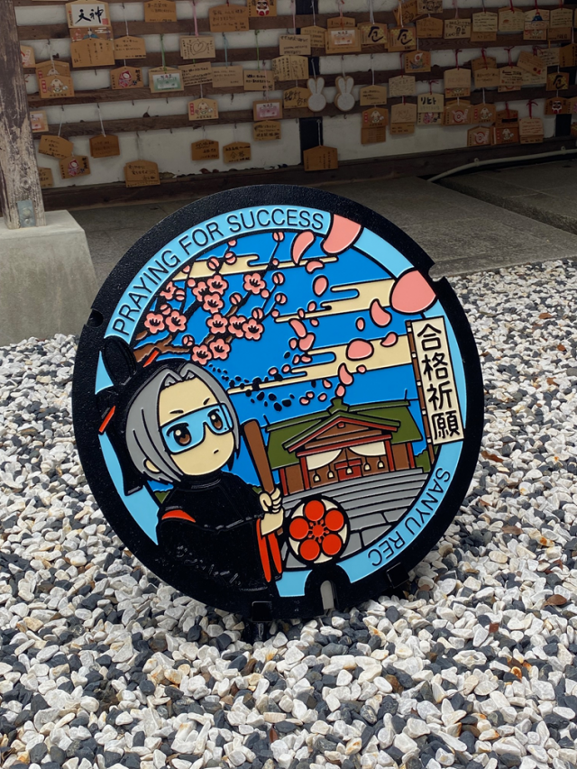 奉納されたマンホールふたは、受験シーズンが終わる令和8年3月まで境内に設置される予定です。