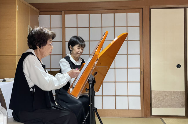 長年、安岡寺の清掃等をされているスタッフの堀小(ほりこ)さんは、このヘルマンハープを習っており、和聖さんが住職に就任した最初の交流会の際、お祝いする気持ちで、先生の川瀬さんと演奏したのだそう。ただ、このことをきっかけに、その後の安岡寺の交流会でも演奏されています。
