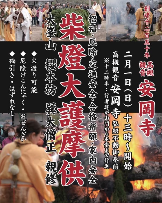 安岡寺の恒例行事「柴燈大護摩供・火渡り神事」は2/1(日)に行われます